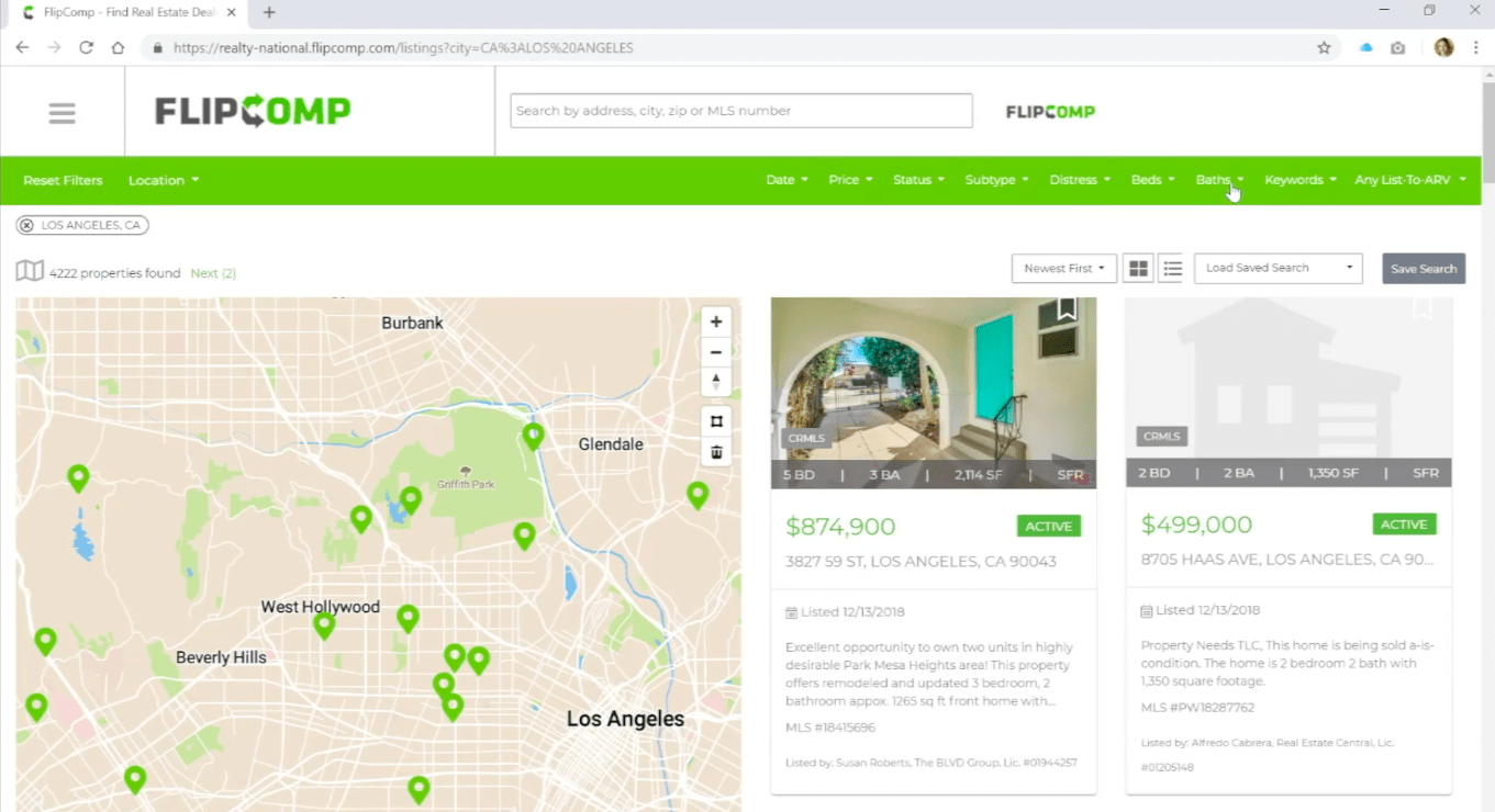 FlipComp allows you to filter by City, State, Zip Code, Price Range, number of Bedrooms/Bathrooms, List Date, Listing Status, and more! We've also included a Keyword Search Filter so FlipComp can comb through property listings based on specific words of interest in the property descriptions.